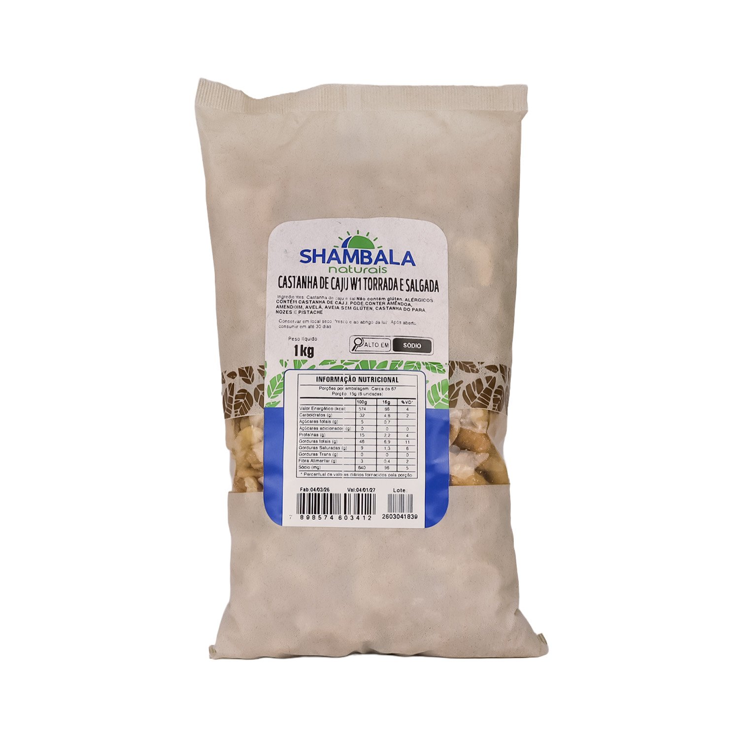 Ingredientes: Castanha de caju e sal. Não contém glúten. ALÉRGICOS: CONTÉM CASTANHA DE CAJU. PODE CONTER AMÊNDOA, AMENDOIM, AVELÃ, AVEIA SEM GLÚTEN, CASTANHA DO PARÁ, NOZES E PISTACHE.
