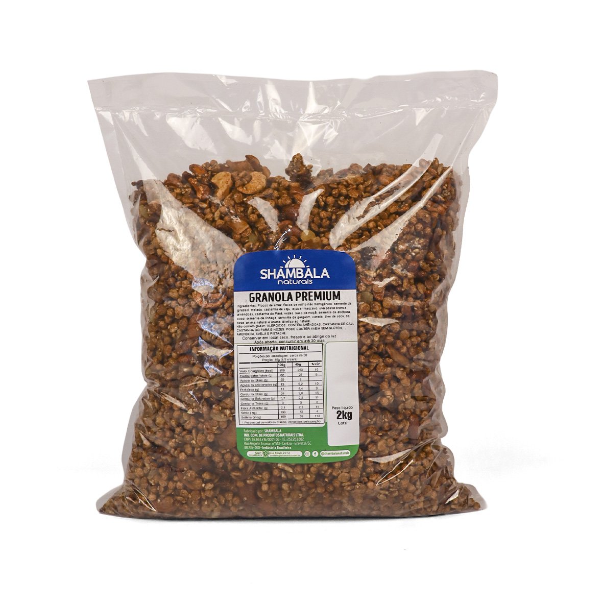 Ingredientes: Flocos de arroz, flocos de milho não transgênico, semente de girassol, melado, castanha de caju, açúcar mascavo, uva passa branca, amêndoas, castanha do Pará, nozes, suco de maçã, semente de abóbora, coco, semente de linhaça, semente de gergelim, canela, óleo de coco, sal rosa, aroma natural e aroma idêntico ao natural. NÃO CONTÉM GLÚTEN.. ALÉRGICOS: CONTÉM AMÊNDOAS, CASTANHA DE CAJU, CASTANHA DO PARÁ E NOZES. PODE CONTER AVEIA SEM GLÚTEN, AMENDOIM, AVELÃ E PISTACHE.